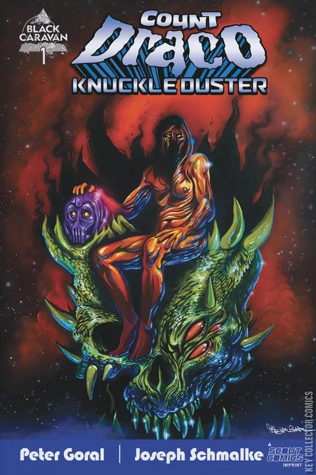 The Curse of the Cryptocrystalline Stone continues in 2021! Follow the Cosmic Ghoul Warrior and young psychic, Acele Aerglo, as they embark on the next chapter of an adventure that will take them from the vastness of The Void to the depths of an aquatic moon crawling with fantastic creatures! This action-packed tale of SINISTER CELESTIAL SORCERY picks up where last year's SMASH-HIT Phantom Starkiller left off. This time around, the story is told from behind the mask of the mysterious and malevolent Count Draco Knuckleduster and his Cybernetic Chrononautical Exosuit! Can the curse be broken in time... or is it already too late?