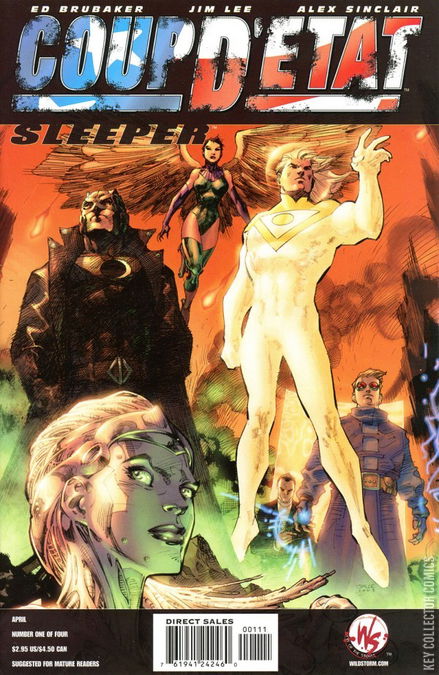 "Coup d'État, Part 1" EYE OF THE STORM. Superstar artist Jim Lee (BATMAN) provides art for Part 1 of a 4-part story spanning the Eye of the Storm corner of the WildStorm Universe! The Authority has been watching over the Earth for years…so what happens when Tao, the most efficient manipulator in the world, tricks the U.S. government into committing an accidental, interdimensional atrocity on its own soil? Once set in motion, it could turn out to be the straw that breaks the Carrier's back! But their reaction might be exactly the opposite of what Tao expects.Tao, an old member (and then enemy) and one of the most powerful men in the world, had somehow found himself with a phase engine, an alien device powered by a black hole. Tao’s purposes and goals had always been sinister, but what he did with the engine was something not even his own people could have predicted. He staged an elaborate attack on a secret American base all as a cover to get the engine into government hands without them knowing it. Once they did, they realized that the engine could be used to travel into the Bleed, something that until then, only The Authority could do with any measure of success. As soon as they realized this they put together a probe driven by the engine and launched it into the Bleed. Somehow Tao had known what was coming next.When the engine made it into the bleed it exploded, but the destruction was more than any normal thing. The black hole in the engine had ripped a hole in the Bleed and also destroyed an enormous alien ship (5 or 6 times the size of the Carrier) that had been nearby. The effects were disastrous and in moments burning pieces of the ship and its passengers (members of a race of giant beings called the Vigil) were falling on Florida. The Authority arrived to help but there was basically nothing they could do but teleport away the people who were still alive. The ship fell and much of Florida was destroyed.After the dust had settled, Jack tried to learn all he could about the Vigil...