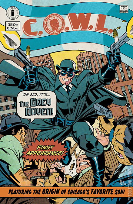 RAVEN'S FIRST FLIGHT! NEW STORY ARC! Before he started C.O.W.L., Geoffrey Warner fought for Chicago as the city’s first hero, THE GREY RAVEN! But what started him down the path of crime fighting? Witness the origin of Chicago Superheroes, the War Years, and the formation of C.O.W.L. as told in the sellout issue written by C.O.W.L reporter and comic book writer Randall Winters.