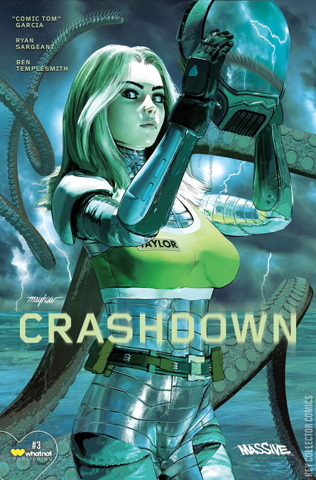 World-renowned comic artist Mike Mayhew brings his popular photorealistic style to the world of Crashdown. Things are unraveling faster than anybody could have predicted! On the planet Empyrean's surface, our survivors scramble to adapt after one of them is found dead! With the impending arrival of reinforcements from the orbiting colony ship, can they regroup and prepare before the monstrous creatures in the sea destroy this second ship as well? And what exactly is happening to Allison's leg? Find out in the penultimate issue of CRASHDOWN, written by comic journalists 'Comic Tom' Garcia and 'Fire Guy' Ryan Sargeant with art by horror legend Ben Templesmith!