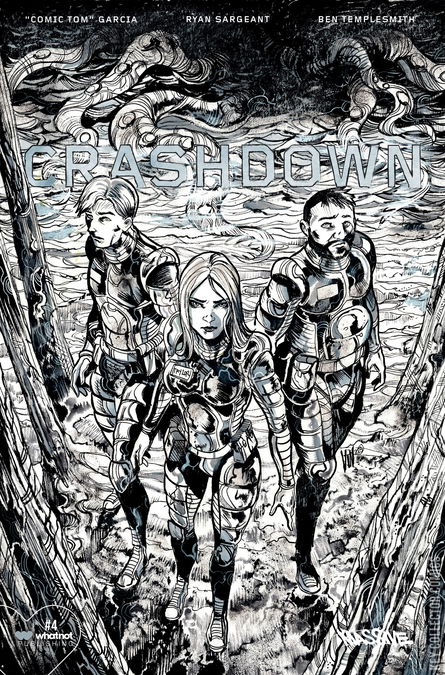 Tom Garcia and Ryan Sargeant, the hosts of the Comic Tom 101 YouTube Channel with over 12 million views, team up with legendary horror artist BEN TEMPLESMITH (30 Days of Night) for this four-issue story that is equal parts Lost and Alien, with a Lovecraftian twist. Help is on the way! In the final issue of CRASHDOWN, our survivors on the planet Empyrean are battered, bruised, but not beaten as they struggle to establish a new home for humanity. Reinforcements are inbound from their orbiting colony ship. Who will survive, and what will be left of them?