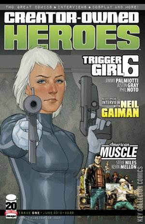 "AMERICAN MUSCLE," Part One by STEVE NILES & KEVIN MELLON The world ended a long time ago. How it happened exactly and what exists in the wasteland have always been a mystery. Now Chloe, Gil and a gang of rebels have escaped the last human stronghold and are blazing across Post-Apocalypse America in search of paradise. "TRIGGERGIRL 6," Part One by JIMMY PALMIOTTI, JUSTIN GRAY & PHIL NOTO In this sci-fi thriller, the sixth in a series of genetically modified assassins born in a secret laboratory sets her sights on the ultimate target. But what happens when the perfect killing machine takes a personal interest in her target only to uncover a conspiracy that may change the fate of the entire human race? PLUS! An interview with NEIL GAIMAN! Triggergirl cosplay! Con photos! And original articles all celebrating the creator-owned spirit of independence!