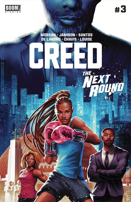 While Amara-with two trainers in an uneasy alliance-crosses paths with her greatest rival in the tournament circle, Adonis and Bianca face the cutthroat capitalism of the business world, where only one Creed will be the victor. The shocking new sponsor of the monumental upcoming fight only adds insult to injury as Adonis is forced to make a frustrating decision. Co-creator of Bitch Planet Valentine De Landro (X-Factor, Black Manta) joins the Creed fight as the guest artist alongside Creative Director Michael B. Jordan, writers LaToya Morgan and Jai Jamison and series artist Wilton Santos!