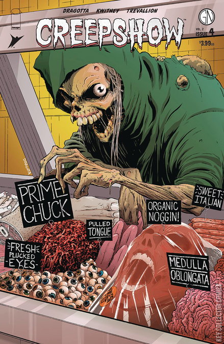"Attention, shoppers! Naughty NICK DRAGOTTA (EAST OF WEST) tells the gruesome story of a deadly wraith who punishes bad customers in Killer Cart Corral.Then, the abominable ALISA KWITNEY (Mystik U) teams up with the monstrous MAURICET(G.I.L.T.) to explore an aging witch’s desperate attempt to hold on to her power in “The Amulet.