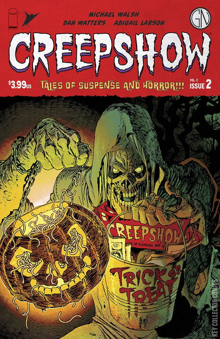 'CREEPSHOW is back with two more terrifying tales! First, MICHAEL WALSH (THE SILVER COIN) broadcasts a chilling yarn about a down-on-his-luck dad and his son's obsession with TV in ''The Man With No Eyes''! Then, DAN WATTERS (HOMESICK PILOTS, Arkham City) and Hugo Award-winning illustrator ABIGAIL LARSON (Sandman Universe: The Dreaming) will render you speechless with the story of a young woman burdened and the price she'll pay for silence in ''Stop Haunting Me''!'