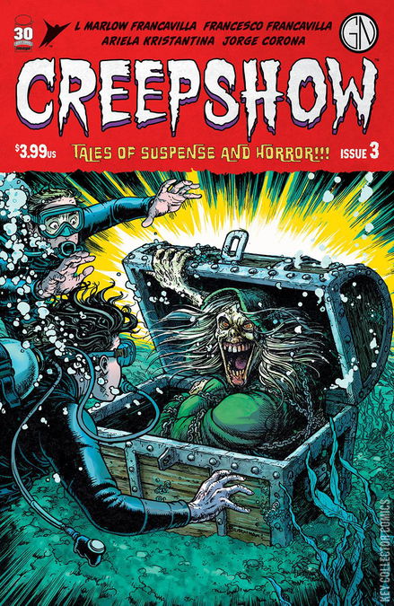 The Creep scares up two all-new standalone stories in this star-studded anthology based on the hit Shudder TV series. FRANCESCO FRANCAVILLA (Night of the Ghoul, Detective Comics) and L MARLOW FRANCAVILLA welcome you to a barbershop where the locals share tales of their greatest kills, and the hunters can just as easily become prey. ARIELA KRISTANTINA (Chain) and JORGE CORONA (THE ME YOU LOVE IN THE DARK) journey to a temple hidden within an island paradise, where many visit - but not everyone leaves.