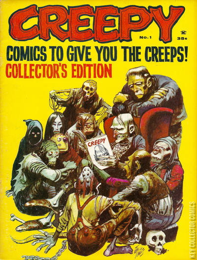 This is it - the historical first issue of horror classic CREEPY! Edited by Russ Jones, it contains seven short black and white stories about voodoo, werewolfs and vampires. Perhaps the strangest of these is the H2O world about divers who encounter a weird ancient underwater race that plans on returning to the surface. Voodoo! H2O World Vampires Fly at Dusk! Werewolf! Bewitched! The Success Story Pursuit of the Vampire!