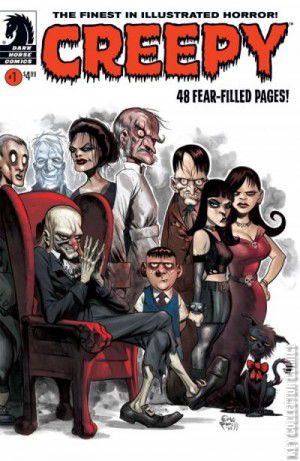 What's black and white and clawing its way onto your reading list? It's the newly resurrected Creepy, of course! Now, don't fret, my putrid pets-these new terror tales are cut from the same cursed cloth as the outlandish originals, telling contemporary horror stories with gorgeously ghoulish art from a lineup that'll make you lose your head! Original Creepy artist Angelo Torres teams up with devilish Dan Braun on 'Hell Hound Blues'; Michael Woods and artist Saskia Gutekunst serve up a dose of 'Chemical 13'; Neil Kleid and Brian Churilla provide 'All the Help You Need' at a weird weight-loss camp; and jaundiced Jason Shawn Alexander brings his phenomenal painting skills to Joe Harris's 'The Curse'! Plus Bernie Wrightson, the return of 'Loathsome Lore,' and more. All this, plus one classic story from Uncle Creepy's dank dungeon, and you've got 48 freakish pages of terror to bring home to mummy!