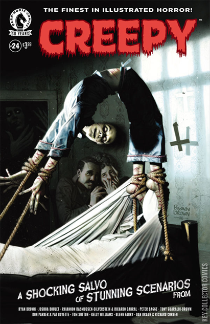 Before Uncle Creepy goes into hibernation, we’re bringing Richard Corben back to the pages of Creepy! Regular contributor Dan Braun will collaborate with Corben on an all-new story, writer Rhiannon Rasmussen-Silverstein joins forces with Portuguese artist Ricardo Cabral, and Peter Bagge revisits the Creepy Family Tree! Tony Guaraldi-Brown delivers a killer Monster Gallery piece, Glenn Fabry provides a disturbing color pinup, and more surprises fill this final foray into fright!