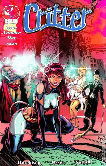 Critter now prowls the streets of Los Angeles with her new pals, Purrfection. A new team, a new school, and a new city to explore will keep Critter on her toes, but she is still being watched closely by Paradox, the man from the future. Are his intentions really as they seem, or is his guidance of the heroes and villains of the present just a cover for an unknown agenda? Note: Marilyn Monroe and Charlie Chaplin only appear on the cover (as does a likeness of Superman)