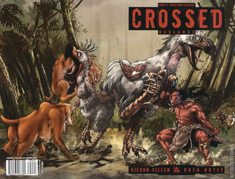 Crossed C-Day 2015 is here! And to celebrate the event, superstar writer Kieron Gillen (Uber, Wicked & Devine) is launching a new story arc that will take the horrors of the Crossed back to the ancient past! 75,000 years ago was the closest humanity has ever came to being purged from the Earth. There were as few as 2000 humans remaining. This is historical fact. Why it came to this is generally blamed on super-volcano Toba causing a minor ice-age. But that's not the full story. That is not the history of the Homo Tortor, i.e. Man The Toturer. This empire before the beginning of time, that sends raiding parties gathering other Homo species and enormous mega-fauna, invented cruelty, refined domination, perfected killing. And they think their power will last forever. Join the hunt for historical answers with this issue that kicks off C-Day events worldwide as fans celebrate the grueling world of Crossed at comic shops everywhere. There is no help, there is no hope. There is only the Crossed. Available with Regular, Homo Tortor, Megafauna Mayhem, & Terror Birds Covers by Fernando Heinz, Torture & Ritual Covers by Raulo Caceres, Wraparound Cover by Rafa Ortiz, Art Deco Cover by Michael DiPascale, Femme Fatale cover by Juan Jose Ryp, and a special Red Crossed Incentive Cover also by Heinz.