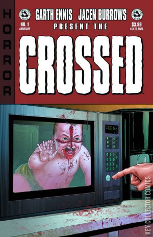 The year of the Crossed begins this March 14th on 'C-Day', the date the infection spreads and this new ongoing series launches! Since its inception, Garth Ennis' Crossed has captured the imagination of horror fans. The vicious and merciless world of the Crossed has pushed hardcore horror storytelling to the brink and now with the release of Crossed: Badlands, it goes beyond. Join us as the original Crossed creative team returns! Garth Ennis launches the all-new ongoing BI-WEEKLY series with the fellow horror luminary, artist Jacen Burrows. What is to follow is nothing short of ground breaking survival horror at its best and most frightening. Even better, a new issue will be coming out every 2 weeks! Picture the cruelest affronts to decency. Conjure your darkest nightmares... and then realize it could all be so much worse. When civilization crumbles in one terrifying moment; when people are gleefully breaking into unthinkable acts of violence all around you; when everyone you love has died screaming in agony: What do you do? There is no help. There is no hope. There is no escape. There is only the Crossed.