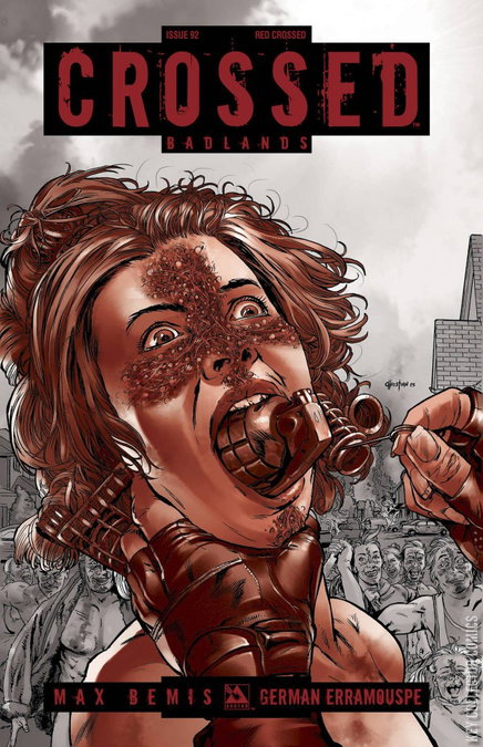 Say Anything singer and songwriter, Max Bemis, delivers a visceral story of Crossed misery that will leave you scarred for life. Every survivor knows that there is nothing but wretchedness awaiting them in a Crossed world. But despite the hate and fear that rule the infected domain, love still finds a way to creep into even the direst of circumstances. Is there hope for more than survival in a world of maniacs? Available with Regular & Torture Covers by Christian Zanier, Wraparound Cover by Daniel Gete, C-Day Worldwide Cover by German Nobile, Art Deco Cover by Michael Dipascale, and Red Crossed Incentive Cover also by Zanier.