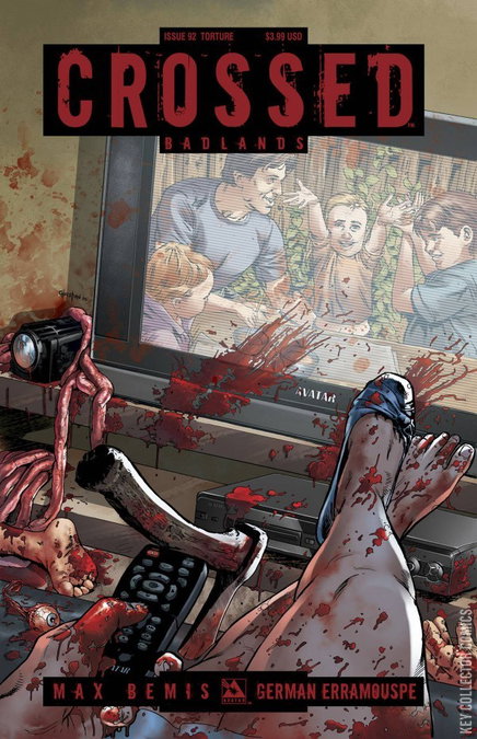 Say Anything singer and songwriter, Max Bemis, delivers a visceral story of Crossed misery that will leave you scarred for life. Every survivor knows that there is nothing but wretchedness awaiting them in a Crossed world. But despite the hate and fear that rule the infected domain, love still finds a way to creep into even the direst of circumstances. Is there hope for more than survival in a world of maniacs? Available with Regular & Torture Covers by Christian Zanier, Wraparound Cover by Daniel Gete, C-Day Worldwide Cover by German Nobile, Art Deco Cover by Michael Dipascale, and Red Crossed Incentive Cover also by Zanier.