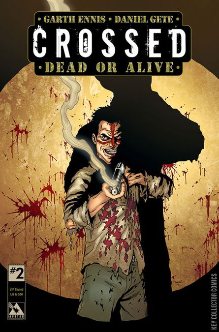 Garth Ennis' grueling horror mini-epic comes to a violent and shocking conclusion as the misery of the Crossed cannot be escaped. Crossed: Dead or Alive is a special event that is designed to help bring Ennis' vision for a live action Crossed series to life in all of its uncensored gory glory. All editions are first printings, but strictly limited! Available with Regular Cover by Jacen Burrows (limited to 3000 copies), Art Deco by Michael DiPascale (limited to 750 copies), Horror by Michael DiPascale (limited to 750 copies), and a Red Crossed Incentive by Burrows. Topped off with an amazing VIP Triple Signed Edition with a cover by Burrows and signed by writer Garth Ennis, artist Jacen Burrows, and editor William Christensen (limited to 500 copies). Allocations may occur on any of these editions.