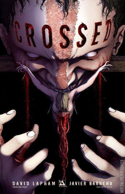 Nothing is sacred as Crossed returns! The biggest hit horror series of the year returns with an all-new six-issue series written by David (Stray Bullets) Lapham! Set right at the start of the Crossed outbreak, this epic tale of depravity promises to shock and disturb you with even more intensity than the first series! The Pratt family was torn apart by the sudden strike of the infected masses. The survivors think they have found a safe place to start over. A place the Crossed won't find them and can be well defended. But those are only the external threat as evil lurks in the hearts of some men and those terrors aren't as easy to see as a Crossed rash. Imagine, for a moment, the worst crimes against humanity. Picture the cruelest affronts to decency. Conjure your darkest nightmares... and then realize it could all be so much worse. When civilization crumbles in one terrifying moment; when people are gleefully breaking into unthinkable acts of violence all around you; when everyone you love has died screaming in agony: What do you do? There is no help. There is no hope. There is no escape. There are only the Crossed. Crossed: Family Values #2 is available with a Regular and Wraparound cover by Jacen Burrows, a Torture cover by Paul (Freakangels) Duffield, and a special rare Red Crossed retailer incentive.
