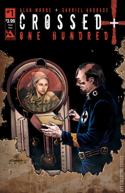 Alan Moore returns to monthly comics in epic fashion with Crossed +100! Set 100 years in the future, Moore has created a whole new world and history with a stunning attention to detail. Examining how civilizations rebuild and how generations grow, Moore weaves a rich tapestry of humanity evolving under extreme hardship, all of which is lushly rendered by Gabriel (Ferals) Andrade. Archivist Future Taylor leads a salvage team working to rebuild the historical record of the original Crossed outbreak. She's seen them in videos, but never any live ones, the Crossed are part of the distant past. Until suddenly, a handful appear, and the blood begins to flow. All is not as it seems as a horrific mystery unfolds and once again Alan Moore redefines the medium. This masterwork is a self-contained whole new world, no prior knowledge of the Crossed series is needed. All the covers for the series have been planned out by Alan Moore, with the images enriching and expanding on the series. Clues and glimpses of what came before, and what might be, are found throughout the variant covers. American History X Wraparound - Each of these will depict a specific time in the past hundred years, showing how things have changed and offering a peek at some key events. Each cover will display the year in which it takes place to help build the full picture. Crossed Culture - These are all images of how the Crossed have changed the way they live. With few humans left to hunt, and the animal kingdom thriving with predators, even the thrill-driven Crossed have had to make adjustments to their lifestyle. Future Tense - Each cover is an homage to a famous work of science fiction, and each of those original works ties into themes of this issue. New World Order Wraparound - These are not for the faint of heart or delicate of constitution. We can't even picture them in this catalog, they are visions of what an ideal all-Crossed world would be. If the madmen have their dreams come true, what would the everyday life look like? These covers are brutally intense images of true horror and may have scenes of torture, depravity, and nudity. These are clearly for adults only. Each copy of this edition will ship in a sealed polybag with a protective slip cover over the actual image to assure it can be racked in stores. The graphic pictured here is the slip cover only. Due to all these special protective measures this edition is strictly limited to initial orders. Also available with a rare Black Leather cover, and Retailer Incentive covers of Red Crossed and Design Sketch, showing the original works of series artist Gabriel Andrade. Don't miss out on the ultra-rare CGC Numbered Edition as well!