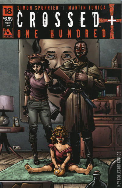The final issue of Crossed +100 is the most shocking yet! In the last installment of the third story arc, Simon Spurrier delivers a desperate resolution to Future Taylor's journey. She has witnessed the rise of the evolved Crossed, seen their tactics up close, and experienced an unexpected journey by raising a Crossed infected child. Everything that has happened to her leads to this moment. Don't sexing miss it! Available with a Regular, Crossed Wires, and American History X Covers by Martin Tunica, Fairy Tale cover by Emilio Laiso, Horrific Homage Cover by Michael DiPascale, Wishful Fiction Cover by Raulo Caceres, and a Red Crossed Incentive Cover also by Tunica.