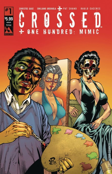 Crossed is back with a giant-size new series! The world of Crossed +100 was created by Alan Moore and introduced us to an entire civilization and language set one hundred years after the Crossed outbreak devoured humanity. Now Christos Gage delves into that future with MIMIC, as one of Beau Salt's disciples invades a military base to pick apart the best and brightest. Each issue also has a second feature as writer Pat Shand teams up with artist Raulo Caceres to deliver a chapter of AMERICAN HISTORY X, based on the events Moore spotlighted as key points in the saga. Available with a sizzling array of covers: Regular by Gabriel Andrade, History X Wraparound and American History X by Raulo Caceres, Fatal Fantasy and Hellish Homage by Renato Camilo, and Ms Mayhem by Christian Zanier. Don't miss the three-cover Crossed Over set by Matt Martin, each limited to just 250 copies, not the Gold Leather by Zanier that is limited to just 150! Lastly, a Century (of Blood) cover limited to 100 copies by the artist who started it all, Gabriel Andrade!