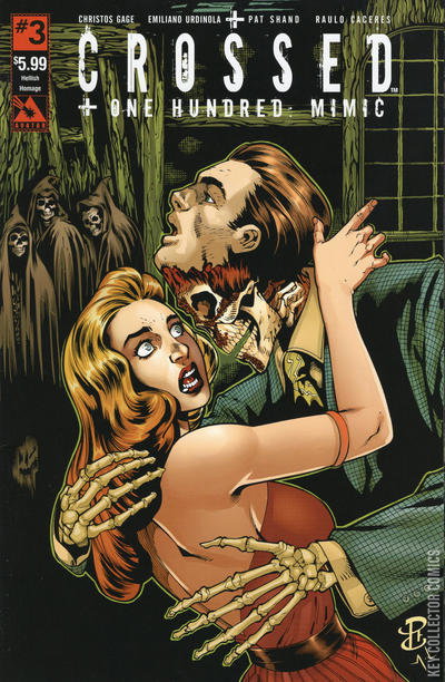 Two epic tales in every giant-size Crossed +100 Mimic issue! The world of Crossed +100 was created by Alan Moore and introduced us to an entire civilization and language set one hundred years after the Crossed outbreak devoured humanity. Now Christos Gage delves into that future with MIMIC, as Fleshcook takes control of a settlement, his need to experiment leads him to risk alienation. Each issue also has a second feature as writer Pat Shand teams up with artist Raulo Caceres to deliver a chapter of AMERICAN HISTORY X, based on the events Moore spotlighted as key points in the saga. Available with a sizzling array of covers: Regular by Gabriel Andrade, History X Wraparound and American History X by Raulo Caceres, Fatal Fantasy and Hellish Homage by Renato Camilo, and Ms Mayhem by Christian Zanier. Don't miss the three-cover Crossed Over set by Matt Martin, each limited to just 250 copies, nor the Century (of Blood) cover limited to 100 copies also by Camilo.