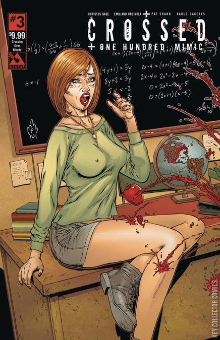 Two epic tales in every giant-size Crossed +100 Mimic issue! The world of Crossed +100 was created by Alan Moore and introduced us to an entire civilization and language set one hundred years after the Crossed outbreak devoured humanity. Now Christos Gage delves into that future with MIMIC, as Fleshcook takes control of a settlement, his need to experiment leads him to risk alienation. Each issue also has a second feature as writer Pat Shand teams up with artist Raulo Caceres to deliver a chapter of AMERICAN HISTORY X, based on the events Moore spotlighted as key points in the saga. Available with a sizzling array of covers: Regular by Gabriel Andrade, History X Wraparound and American History X by Raulo Caceres, Fatal Fantasy and Hellish Homage by Renato Camilo, and Ms Mayhem by Christian Zanier. Don't miss the three-cover Crossed Over set by Matt Martin, each limited to just 250 copies, nor the Century (of Blood) cover limited to 100 copies also by Camilo.