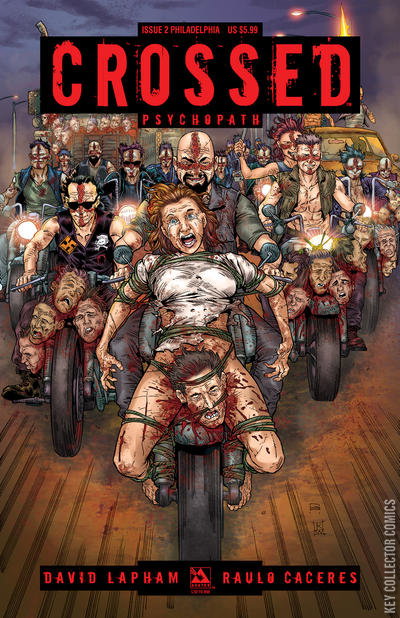 The most disturbed horror series of all time returns with an all-new six-issue series written by David (Crossed: Family Values) Lapham! Harold Lorre, a wretch of a man, has duped a group of fellow survivors into helping him. They have fallen for all his lies, his charades, and his deceipts. Yet the mission he leads them on seems almost sweet. Join us as Lapham and artist Raulo (Capt Swing) Caceres descend into a story about the worst aspects of human behavior, a tale of unspeakable evils, violent assaults on both mind and body, and of longing for death and the sweet release it will bring. When civilization crumbles in one terrifying moment; when people are gleefully breaking into unthinkable acts of violence all around you; when everyone you love has died screaming in agony: What do you do? There is no help. There is no hope. There is no escape. There are only the Crossed. Crossed: Psychopath #2 is available with a Regular cover by Jacen Burrows, a Wraparound cover by series artist Raulo Caceres, a Torture cover by Matt Martin. MATURE THEMES