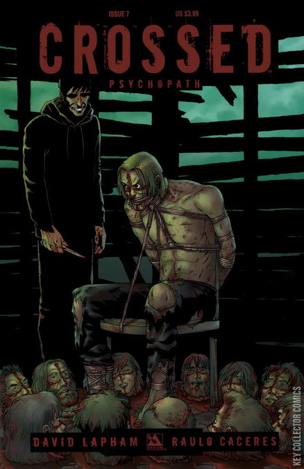 The unbelievable ending to Crossed: Psychopath is here! What is worse than a homicidal Crossed maniac bent on visiting the most unimaginable atrocities upon you? David (CALIGULA) Lapham reveals the true horror behind a human monster that was twisted beyond belief without the Crossed infection driving his insanity. Harold Lorre is a very special fiend that brings his own unique brand of Hell to the downtrodden survivors of a world gone mad. There is no hope. There is no escape. There are only the Crossed. Crossed: Psychopath #7 is available with a Regular Cover by Jacen Burrows, a Wraparound cover by series artist Raulo Caceres, a Torture cover by Raulo Caceres, and a special rare Red Crossed retailer incentive edition.