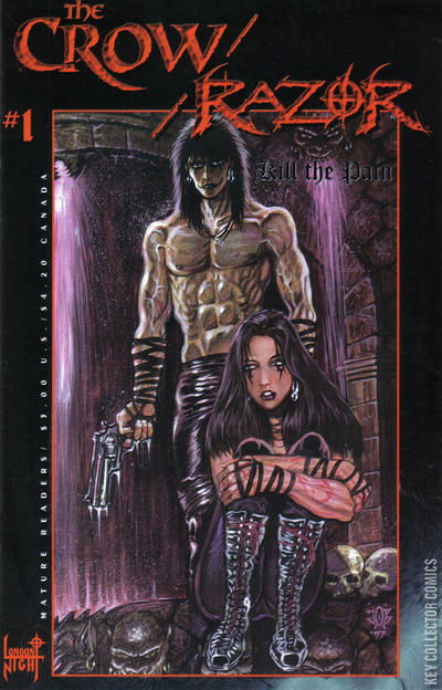 A London Night Studios / Top Dollar Comics co-production, starring The Crow (Eric Draven) and Razor (Nicole Mitchell) against an enemy called Pain. A mini-series.Brought to you by James O'Barr and Everette Hartsoe, the creators of The Crow and Razor.