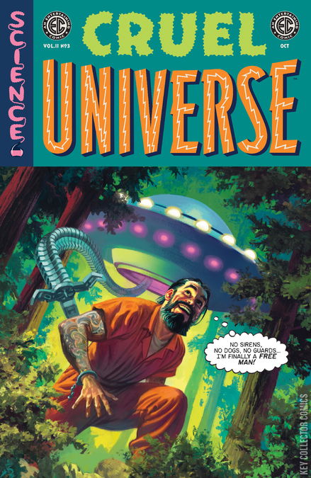 Corporate greed, human desperation, technological despair! Such postulations all are but tiny specks swallowed by the unforgiving void of CRUEL UNIVERSE!EC’s Eisner Award–nominated sci-fi horror anthology continues its deep dive into futuristic depravity and darkness with three new tales from writers Cecil Castellucci (Shade the Changing Girl), Sarah Gailey (Eat the Rich, Buffy the Vampire Slayer), and, in his EC writing debut, Eisner Award nominee Rian Hughes (Batman: Black and White). Illustrating their dark visions are Kano (EC’s Cruel Universe), UK comics sensation Anna Readman (2000 AD), and Claire Roe (EC’s Epitaphs from the Abyss)!Witness as these stellar creative teams probe deep into the dark void of space—and the human soul—in what’s sure to be another stark installment of the Eisner-nominated series!