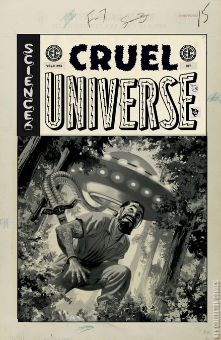 Corporate greed, human desperation, technological despair! Such postulations all are but tiny specks swallowed by the unforgiving void of CRUEL UNIVERSE!EC’s Eisner Award–nominated sci-fi horror anthology continues its deep dive into futuristic depravity and darkness with three new tales from writers Cecil Castellucci (Shade the Changing Girl), Sarah Gailey (Eat the Rich, Buffy the Vampire Slayer), and, in his EC writing debut, Eisner Award nominee Rian Hughes (Batman: Black and White). Illustrating their dark visions are Kano (EC’s Cruel Universe), UK comics sensation Anna Readman (2000 AD), and Claire Roe (EC’s Epitaphs from the Abyss)!Witness as these stellar creative teams probe deep into the dark void of space—and the human soul—in what’s sure to be another stark installment of the Eisner-nominated series!