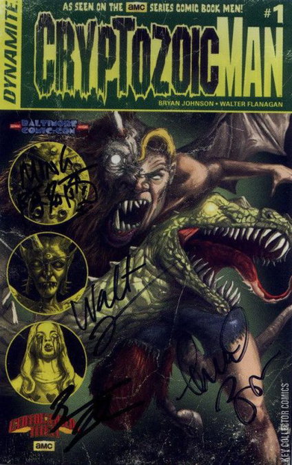 You watched Stan 'The Man' Lee pitch it on Season II of AMC TV's 'Comic Book Men'; Now, from CBM cast members Walt Flanagan & Bryan Johnson comes 'Cryptozoic Man'. Alan Ostman, a middle-aged husband/father, sees his life quickly unravel when his daughter goes missing on a camping trip in the Pacific Northwest...Bigfoot country. After Gray aliens abduct him from a roadside bar, he learns that the fate of the world is dependent on trapping the world's most legendary cryptids...not to mention defeating a psychopath in a pig-shaped leather bondage mask, Alan knows he has his work cut out for him. The storyline revolving around this four issue series will be revisited in Comic Book Men Season III.