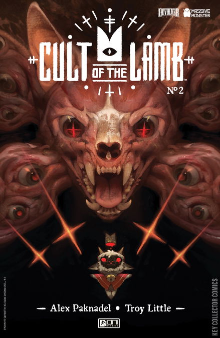 Rejoice! The hit video game from Devolver Digital and Massive Monster is now a full-blown comics phenomenon . . . and acclaimed creators Alex Paknadel (Red Goblin, All Against All) and Troy Little (Rick and Morty vs. Dungeons & Dragons) shall reap the Lamb’s vengeance! The Lamb settles into their new role as Wearer of the Red Crown and Magnanimous Leader, and along with new follower Nana, begins to build living quarters and, most importantly, the shrine where the quickly growing cult will feed the fervor of the Lamb’s new power. Elsewhere, the Bishops of the Old Faith feel fresh pain in old wounds as the One Who Waits declares a new earthly vessel, and Leshy is instructed to put an end to this new threat before the Lamb’s sway over the land and its people can grow.