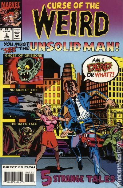 The Ghost of Grismore Castle!, art by Steve Ditko; A practical jokester tricks his friend into fleeing a haunted house only to be attacked himself by real ghosts. Bat's Tale!, script by Stan Lee, art by Russ Heath. Innocent Bystander, art by Dick Briefer. The Unsolid Man, script by Carl Wessler, art by Joe Orlando. No Sign of Life,