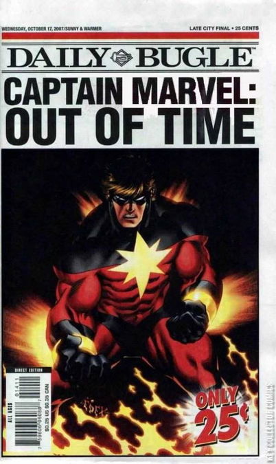 The "MONTHLY" DAILY BUGLE: Chock full of interviews, a monthly checklist of on sale titles, images, variant covers, all for the cover price of 25 cents. 8 big color pages of Marvel excitement. Published October 2007. Original cover price: $0.25. Cover feature: Captain Marvel. Articles on: Annihilation: Conquest, What If? Annihilation, 'November's Fall-tastic Annuals,' 'X-Men: Messiah Complex,' WWH: Aftersmash, Silver Surfer: In Thy Name and House of M: Avengers. Q & A with Robert Kirkman. 'Breaking In' - comments from Andy Lanning and Dan Abnett.