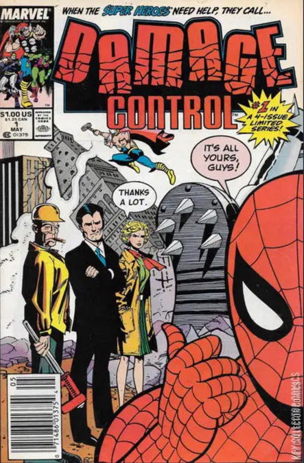 It's account executive John Porter's first day on the job at Damage Control. Meanwhile, The Avengers are on hand to take down the Tinkerer's robot which is threatening Manhattan. Their battle leaves the giant robot leaned up against the Twin Towers and Damage control is called in to clean it up.