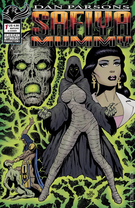 Monster Masters, Dan Parsons & Michael Gordon, delivers their stark grey tone creature feature - Jade Vampyre - in a single glorious issue! The story originally serialized in American Mythology Monsters is told the way it was meant to be read, in a single horrifying sitting. Beautiful Egyptologist, Safiya Mahmoud discovers much more than even she bargained for when she and her fellow archeologists uncover a long forgotten sarcophagus buried deep in the heart of the desert. After extensive study and examination at Safiya's ultra-modern Cairo research facility, the truth begins to reveal itself about what they have found. What lies in the State-of-the-Art examination chamber is no ordinary mummified corpse, but "Mernheptan: The Plague Giver,"the most evil, reviled pharaoh in Egyptian History. Despite the concerns of her friends and colleagues, Safiya's obsession with the ancient cadaver intensifies. She works day and night in the laboratory, never leaving the mummy's side until the strange supernatural attraction totally consumes her, with unimaginable and terrifying consequences!