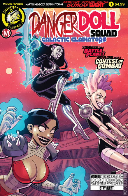 The popular Danger Zone team-up event series returns! Zombie Tramp, Vampblade, and DollFace come together again, and this time they're forced into battle... in space! When a new cosmic threat plucks the girls from Earth and places them into her galactic combat arena, can our lethal ladies measure up against the baddest gladiators from across the cosmos? The next Zombie Tramp universe crossover starts here, with covers from some of the series' hottest artists, each with their own risqué variant as well!