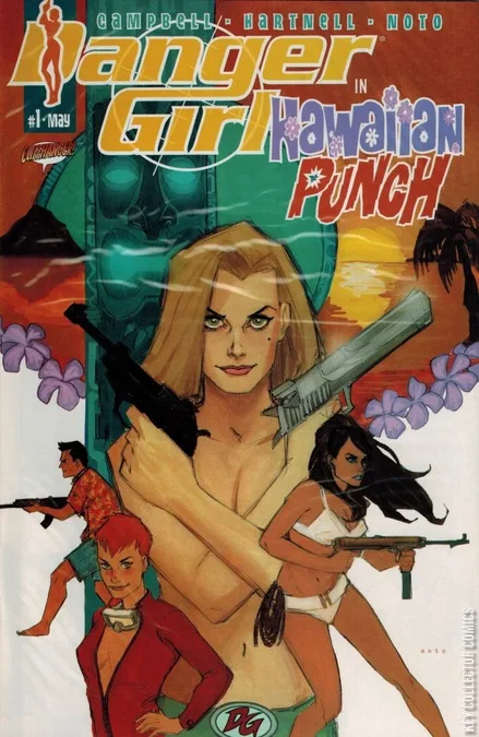 Danger Girl is on vacation in Hawaii when Johnny Barracuda is kidnapped by some unknown organisation. They must find him and stop the deadly plot at hand before it's too late!Abbey Chase, Sydney Savage and Johnny Barracuda have stolen a bomb called magnetosphere from a group of criminals and are fleeing on skis. The place - Cortina D'Ampezzo, Italy. After successfully evading the angry criminals, Abbey drops the bomb down the ravine accidentally and causes an avalanche wiping out the group following them. They all survive, whereas Johnny suggests they take a vacation--one that's far from snow and ice as possible.Around the same time, the submarine fleet of Admiral Brewer is greeted in by Don Ka Nui on the latter's private island off the coast of Hawaii. Admiral Brewer explains that he is here to check facilities when he is presented with a special Lei of flowers genetically engineered by Don Ka Nui. In fact, they have a hypnotic affect on the admiral, which causes him to fall under the influence of Don Ka Nui. Meanwhile, on another part of the island, Abbey and Sydney are surviving a brutal self-wrote karaoke song by Johnny. Johnny finishes and a native woman hits of him and takes him outside for some private time. Sydney follows and spies on them, and when Abbey joins her, they find Johnny has been knocked out and is being carried away by one of the woman's thugs. Both women spring into action and attempt to save Johnny. A group of native-dressed warriors appear and fire poisonous darts at the Danger Girls, but they evade them, only to find it was a diversion to kidnap Johnny. Abbey and Sydney rendezvous back at the hotel with Silicon Valerie and explain everything.Johnny is tied up at the mansion of Don Ka Nui and the women who kidnapped him, where Don Ka Nui is growing the special flowers used in his leis. Nearby, Abbey and the others are using underwater jet-skis to reach Johnny's location. They are attacked by Don's goons and barely escape with their lives.Back...