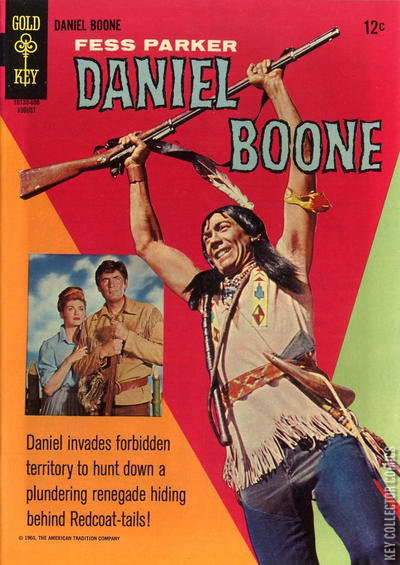 Comic book based on the 1960s Daniel Boone TV show which starred Fess Parker. Cover photos of Ed Ames, Fess Parker and Patricia Blair. The Mandans fact page, art by Joe Certa. The Renegade, script by Paul S. Newman, art by Mike Roy; A renegade white man leads a band of Indians in a raid on Boonesborough. The Daring Bargain, script by Paul S. Newman, pencils by Mike Roy, inks by Mike Peppe; Zachariah tricks a medicine man in order get a fair price for some mirrors. The Cunning Ambush, script by Paul S. Newman, pencils by Mike Roy, inks by Mike Peppe; A man sends Daniel and Mingo into a trap in an effort to save his family. Daniel Boone pinup on back cover.