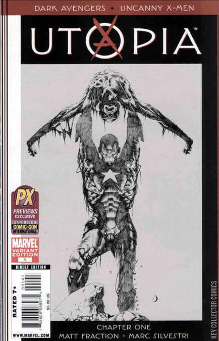 "Utopia (Part 1)" The Dark Avengers take on the Uncanny X-Men! Kicking off the 6-part crossover event, rising star Matt Fraction (UNCANNY X-MEN, INVINCIBLE IRON MAN) is joined by X-artist supreme Marc Silvestri (X-MEN: MESSIAH COMPLEX, CIVIL WAR: THE INITIATIVE