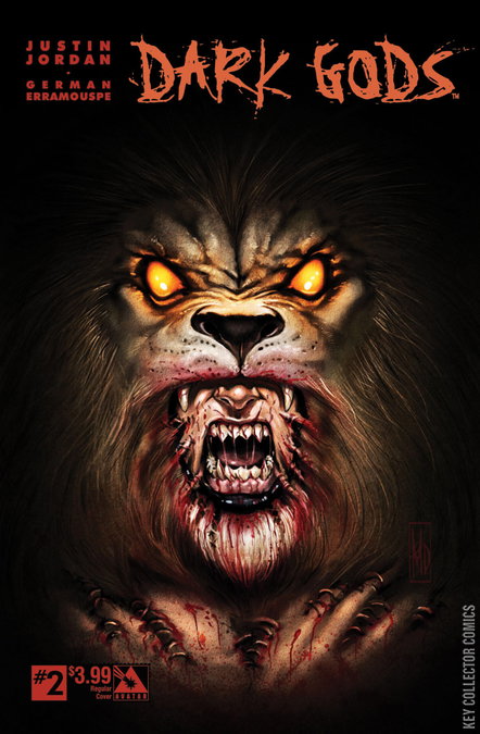 Justin Jordan unleashes a vision of bleak horror as the group known as the Storm tries to hold back the forces that claw at your nightmares. This is the return of the Dark Gods! Tiamet has her children spreading carnage and preparing for her return! Available with Wraparound cover from series artist German Erramouspe, sultry Siren cover from Christian Zanier, Regular and a Fully-Painted Deity cover by Michael DiPascale, and a special Nightmare Retailer Order Incentive cover also by Zanier.