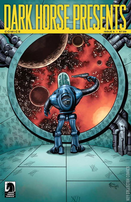 A suicidal robot in the far reaches of outer space might sound depressing, but what if it's story were written and drawn by The Goon's Eric Powell? Dark Horse Presents continues the otherworldly endeavor of bringing you cutting-edge entertainment with another eighty-page leviathan! In addition to new installments of stories by Steve Niles, Howard Chaykin, Sanford Greene, Carla Speed McNeil, Robert Love and David Walker, and Peter Hogan and Steve Parkhouse, this issue also contains a brand-new Skeleton Key short by Andi Watson! Don't miss it!