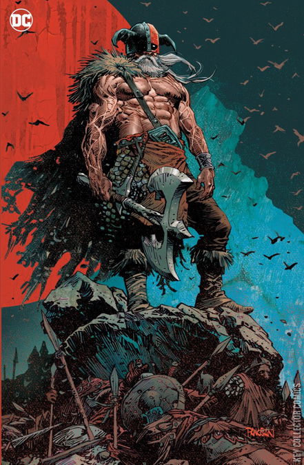 The snow falls thick, blood runs black, and color itself is only a distant memory. The legendary assassin Deathstroke stalks a frozen wasteland, killing for coin among a nation of ever-warring jarls. But when our murderer for hire finds himself cast in the role of reluctant guardian, will he fight to end the icy curse destroying his land or be consumed by the sins of his own dark past? The red-hot Dark Knights of Steel epic expands into bone-chilling new territories with new surprises in store!