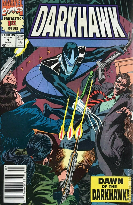 "Dawn of the Darkhawk" The Hobgoblin is searching for an item of power rumored to have been hidden somewhere in Queens NY. To help in this endevour, he recruits mob boss Phillipe Bazin to find it. Bazin's gang accost St Johnny near the the old fairgrounds and offer him money for the info they want. They leave Johnny a taste of what they would pay and give him time to think it over. Meanwhile, the Powell family is having their own troubles thanks to Mr Bazin. ADA Grace Powell is offered a bribe to lay off Bazin which she turns down, and Mike Powell is having problems as a police officer in an over-worked underpaid force. As they talk at the dinner table, Mike Powell mentions how he needs "an Edge Against Crime". That Sunday night Chris is left at home to babysit his twin brothers while his parents are out working on various things. He steps out for a little time to hang out with his friends and comes home to find his brothers aren't there. They had mentioned wanting to visit the fairgrounds before they were demolished so that's where Chris would look. He finds his brothers there, but he also finds something he didn't want to find. Through an opening, he sees his father taking money from Bazin's goons. The brothers can't believe it and end up making a commotion which the goons use to find them in the funhouse. The Powell brothers break free and barricade themselves in a room. Chris hides his brothers in a cabinet and then looks for something to use as a weapon. He picks up a diamond shaped amulet and immediately turns into the Mysterious Darkhawk. The goons break through the barricade and find Darkhawk standing there. They attack and Darkhawk fights back using his Darkforce blast and super strength. A goon charges Darkhawk with a live electrical cable and ends up frying himself in the process. Darkhawk then knocks out the other goons and ties them up for the police. Darkhawk panics not knowing if he would be stuck in this body forever. He then changes back to Chris Powell and retrieves his...