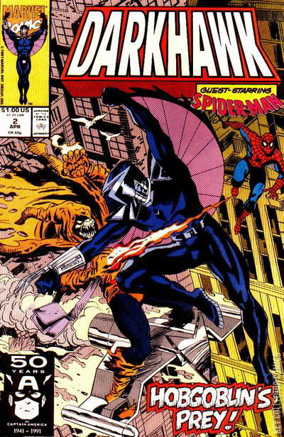 "Goblin's Prey!" In this issue Hobgoblin is determined to have the power of the amulet for himself and takes the battle to in search of the Darkhawk. He encounters Spider-Man there and Darkhawk eventually joins the fray. Darkhawk learns a little about the responsibility of power as he fights along side his superhero idol: Spider-Man.