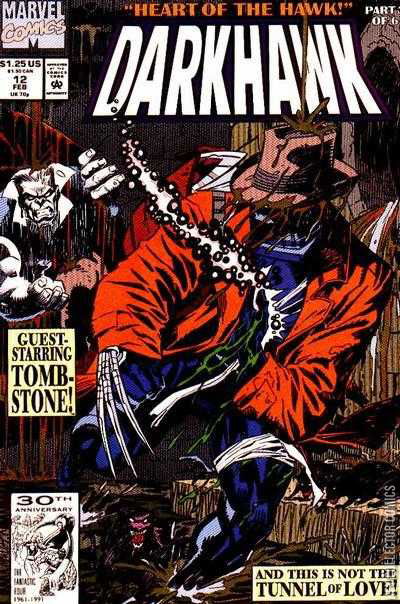 "Heart of the Hawk Part III : Masks" Saint Johnny saves Darkhawk from Tombstone and patches him up. Saint Johnny also holds back secrets and acts as if he doesn’t know about his arm turning into a ray blaster, or any thing about Chris and Darkhawk. Chris can not switch back. Darkhawk stumbles back home to get some clothing to cover his body up. Darkhawk passes out. Grace discovers him in the house and he crashes out his bedroom window. Chris as the covered up Darkhawk spends the night at the hospital with the twins. The trial to convict Bazin continues. His own son takes the stand, black mailed by Allegra, to convict his father of multiple murders. Darkhawk had fallen asleep at the hospital and takes off just in time to encounter Savage Steel crashing through courthouse to kill Bazin. It ends up being Lennox who was taken down faster than the previous times. Bazin makes an escape by chopper as Mike Powell resurfaces and disappears with the chopper.