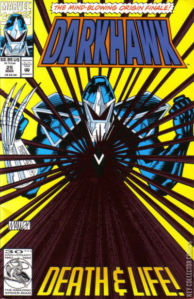 "Return to Forever Part V: Death and Life" Darkhawk learns his origin while fighting Evilhawk.