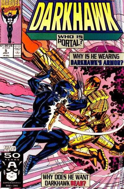 "Fury from Beyond" This issue, we learn more about the mysterious origins of the Darkhawk amulet from Portal, an interdimensional traveller.This issue introduces a new villain named Portal, a Native American mutant who can open portals to different multiverses. During a day at the museum, the Powell family gets attacked by a Bazin hitman. Darkhawk stops the hitman and darkforce blasts Portal unconscious while trying to save himself.