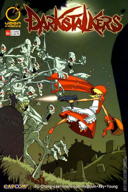 DARKSTALKERS, the ongoing comic based on CAPCOM's classic series, continues this month featuring the team behind the art of the latest hit PS2 and X-Box fighting game, CAPCOM FIGHTING VOLUTION! Through the centuries, MORRIGAN as used her seductive powers to entice her prey to the blissful doom of her embrace. However, as she travels to Romania to confront DEMITRI, she reminisces about a time when she played with her food for a little too long. Meanwhile, panic begins to strike the world as the threat of Pyron looms ever closer. PLUS! A backup story featuring the cute, but murderously insane, B. B. HOOD, gruesomely illustrated by Skottie (VENOM, HUMAN TORCH) Young! Morrigan travels to Romania to confront Demitri; Pyron looms ever closer. There's also a backup story with art by Skottie Young, featuring B. B. HOOD.