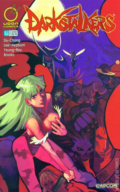 CAPCOM's legendary action-horror franchise, DARKSTALKERS, arrives to comics at last! In this first issue of the new ongoing monthly series, the blood-curdling tales of MORRIGAN, DEMITRI, FELICIA and company begin with the sighting of a star--a sign, some say, of the world's impending doom. But are the DARKSTALKERS there to bring about that terrible end, or thwart it? The answer starts here in the first action- packed, blood-drenched issue! PLUS! Fan-Favorite artist JOE MADUREIRA provides an exclusive JAW-DROPPING Power Foil cover featuring everyone's favorite sexy succubus, MORRIGAN! Acclaimed artist MARK (AMAZING FANTASY, CABLE/DEADPOOL) BROOKS provides a variant cover and backup story!The main story of this issue is collected in the trade paperback.There's also a back-up story with art provided by variant cover artist Mark Brooks.